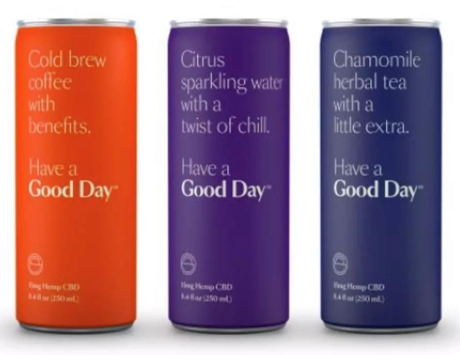 飲料品牌Good Day推出了一款旗艦咖啡產(chǎn)品和兩款新飲料--甘菊花草茶和柑橘汽水,本月在美國首次亮相,每8盎司的罐裝飲料含有15毫克的CBD, 10-25卡路里的熱量。